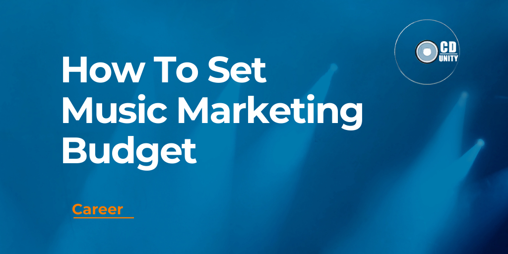 Blue background with white text that reads, "How To Set Music Marketing Budget," a small CD Unity logo in the corner, and the word "Career" underlined in orange.